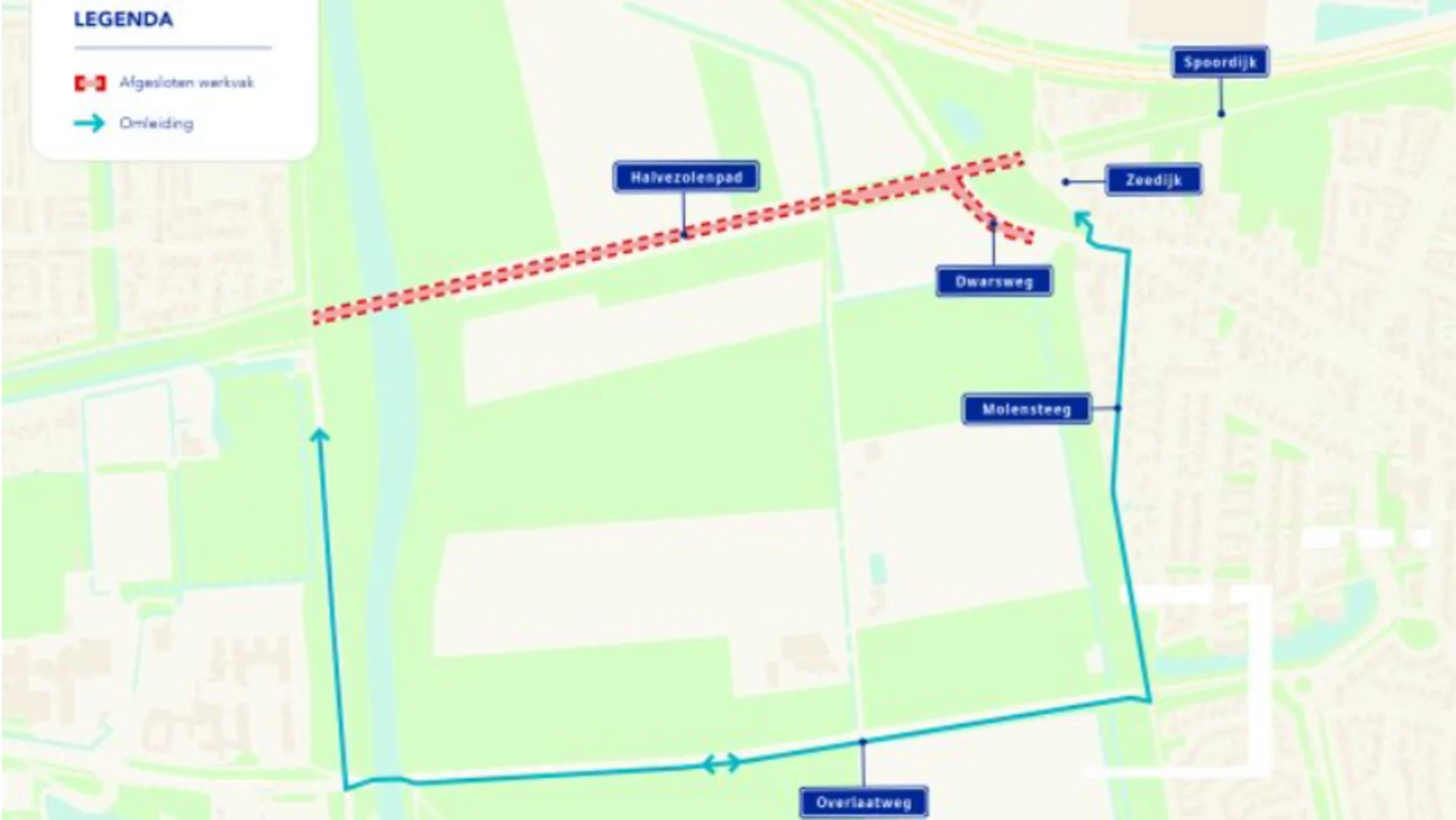 Het fietspad wordt afgesloten, in verband met de werkzaamheden omtrent de Gebiedsontwikkeling Oostelijke Langstraat. Er wordt een nieuwe fietsroute aangelegd en er komt een nieuwe fietsbrug. De werkzaamheden nemen een behoorlijke tijd in beslag en zijn klaar in het najaar van 2027. Voordat bepaalde werkzaamheden kunnen starten, zal de gemeente een dassenfamilie moeten verplaatsen. Deze verblijft in het gebied van het Halve Zolenpad. Fietsers worden door de werkzaamheden omgeleid via de Molensteeg en de Overlaatweg.