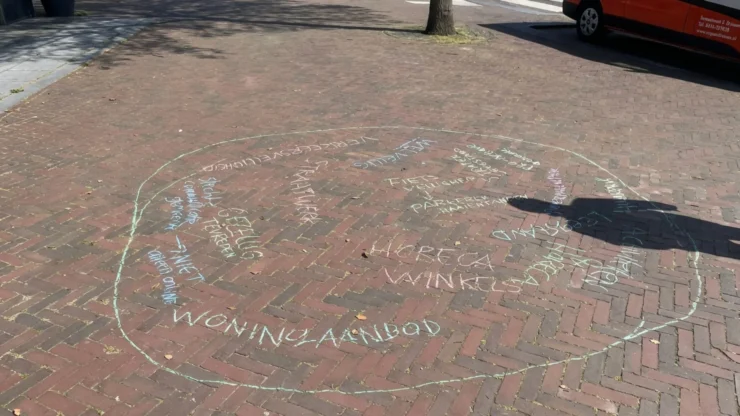 Er worden wat winkels afgestruind, er wordt een frisje of iets anders genuttigd op het terras, of een ijsje gehaald bij de lokale ijsboer. Passerende inwoners krijgen de kans om met Langstraat Media in gesprek te gaan. ‘‘Kunt u in één of twee woorden omschrijven wat u belangrijk vindt in Drunen’’, zo luidt de vraag. Respondenten kunnen hun antwoord met stoepkrijt in de daarvoor bestemde cirkel opschrijven. Al snel komen de eerste concrete antwoorden binnen. ‘‘Ik vind de leegstand erg belangrijk’’, laat een mevrouw van een wat oudere leeftijd optekenen. Ze wijst de leegstaande winkel waar we toevalligerwijs naast staan aan. ‘‘En verderop staat er ook nog een winkel leeg’’, vervolgt ze. Daarbij geeft zij ook aan dat er nog bepaalde basiswinkels missen in het centrum van Drunen. ‘‘We kunnen niet eens aan een simpele emmer komen’’, uit de mevrouw haar ongenoegen. Zij krijgt bijval van meerdere mensen, voor wie de leegstand een doorn in het oog is. Al snel staat ‘leegstand’ vijf keer met stoepkrijt in de cirkel.