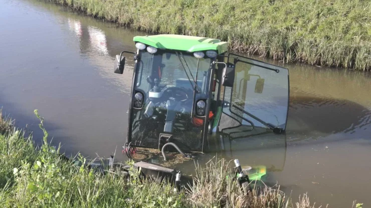 WAALWIJK – Aan de Biesbosweg in Waalwijk is op woensdagmiddag 18 maart een maaimachine te water geraakt. De bestuurder was aan het grasmaaien langs de weg, gleed achteruit en plonsde vervolgens met voertuig en al het water in.